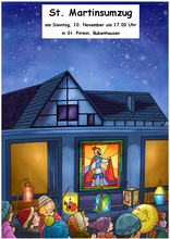 Die St. Martinsfeier, mitgestaltet vom Kindergarten, beginnt um 17.00 Uhr am Montag, dem 11.11. in der Kirche. Nach dem Laternenumzug treffen wir uns am Martinsfeuer. Nach dem Umzug bekommen alle Kinder eine süße Brezel, außerdem gibt es Kinderpunsch und Glühwein.