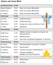 Hier finden Sie alle Gottesdienste in unserer Pfarrei von Gründonnerstag bis Ostermontag auf einen Blick.